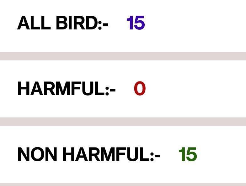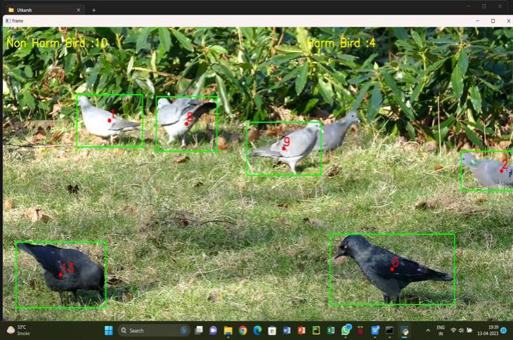 Here, we present the result of our project where we can have a look at the classification of the birds is in 2 types harmful as well as non-harmful. In the above image one can see that crow (the bird which is black colour and having a long beak) is categorized in to the harmful bird category and pigeon (the bird having a grey colour and smallbeak)iscategorizedinnon-harmfulbirdcategory.