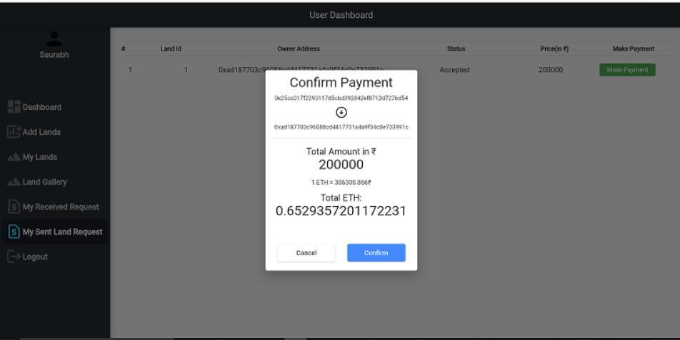 ď‚· Afterthelandowneracceptstherequest,userwhohas senttherequestcanmakepaymentfromhisaccountto buytheland.