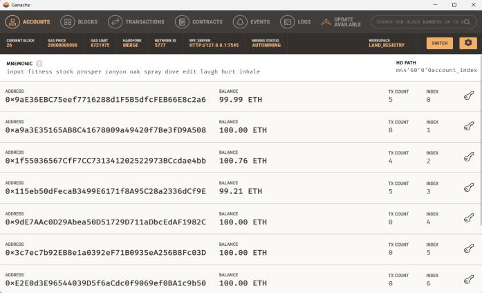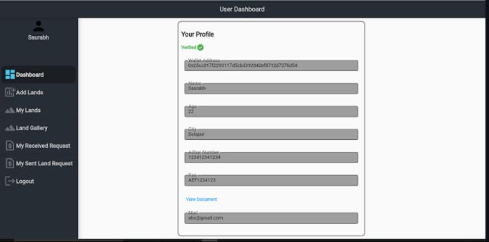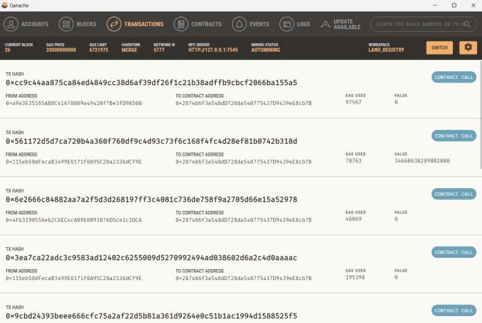 added land inspectors. The land inspector’s dashboard consists ofthefunctionality toverifyuser,verifylandand transfer ownership. If we login as the user, we have the optionsofaddinglands,landdetails,seeingalllands,sending andreceivinglandrequests.WehaveusedtruffleIDEtoset uptheDAPP.