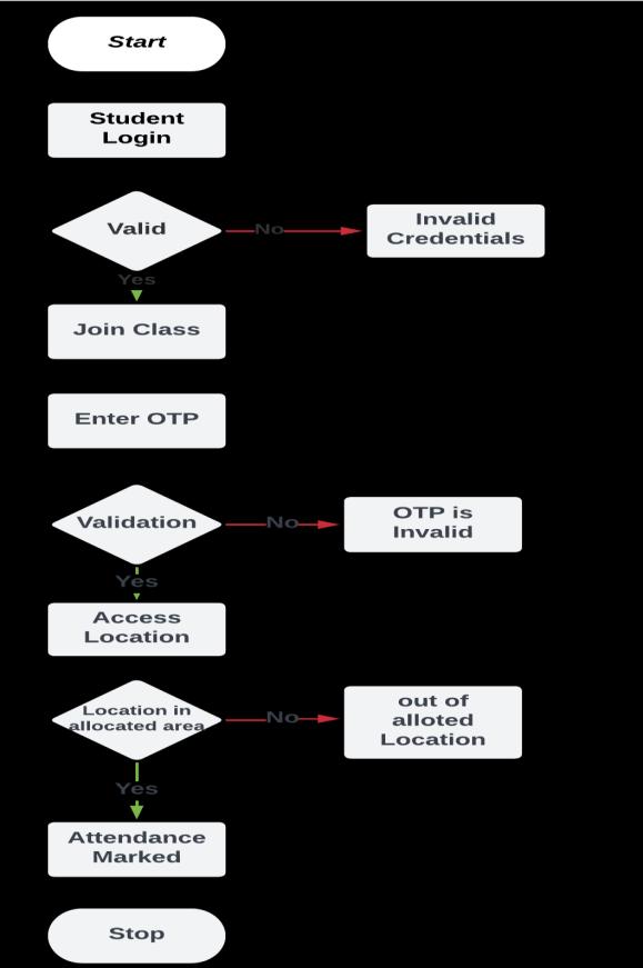 The system then accesses the student's GPS locationto determinewhethertheyareinsidetheboundaryareaor not.If the student is inside the boundary areaandthe OTP is correct, the attendance of the student is markedsuccessfully.