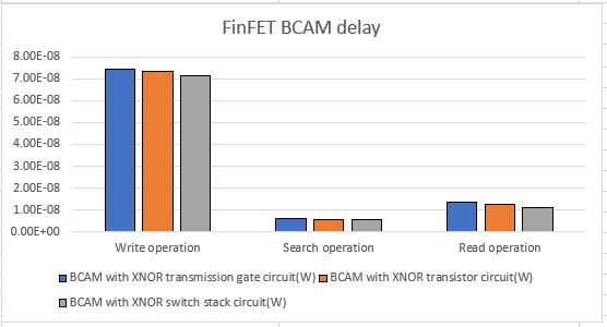 From the obtained delay values, there is 20% - 24% reductionofdelayinFinFETBCAMwhencomparedother circuits.Around27%-37%ofreductionindelayisseenin FinFETTCAMwhencomparedtoothercircuits.