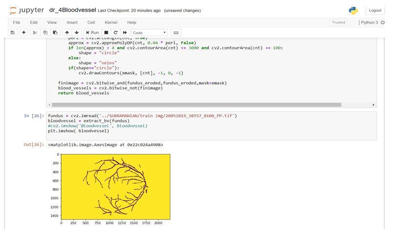 The tiny, elongated structures in the retina are blood vessels. By segmenting blood vessels in retinal images, early illness identification is made possible. Automating this process has various advantages, including reducing subjectivityandremovinglabor-intensivesteps.Theoptic disc,which representsthe beginningoftheoptic nerve, is where the fibres of retinal ganglion cells converge. At the opticdisc,theretina'smajorbloodarteriesalsoenter.The fovea, a 1.5 mm broad depression on the internal surface of the photoreceptor layer, is made entirely of cone photoreceptorsand istailoredforthe bestpossiblevisual acuity. The 0.5mm-diameter foveal avascular zone is a region inside the fovea (An area without any blood vessels).