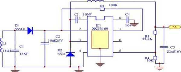Inreceivingcircuitasshowninfigure2.2,wegroundtheterminal4andpinno.8w.r.tcapacitorof104pf.anodeofdiodeSS34is connectedtogroundandanodeofthediodeisinserieswithinductorcoilto44.2kand10kresistorandgrounditpinno.5,3and pinno.1isalsoconnectedtothislinkbefore10kresistorandpinno.1withcapacitor10nfpinno.2andpinno.7areshorted with100kresistancesimilarlywecreateaparallelnetworkofreceivingcoilandcapacitorof15nfwithdiodeSS510isinseries formatandagainthecathodeofdiodeisconnectedtocapacitor10ufthiswholenetworkfurtherlinkwithpinno.2ofICcircuit 3169