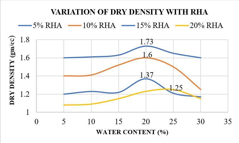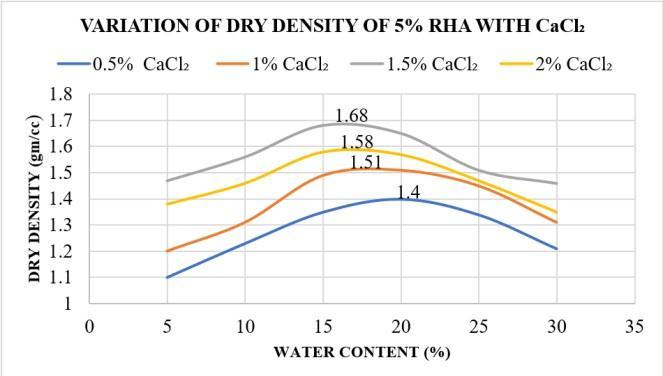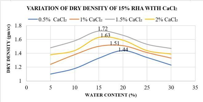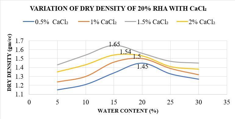 Theoptimumcombinationistakenas20%RHAwith 1.5% CaCl2 which has maximum dry density with minimumwatercontent.