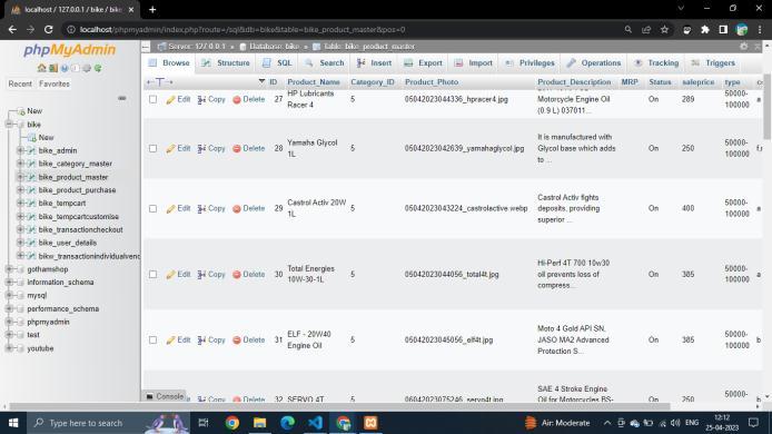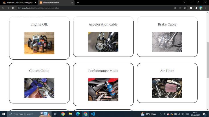 Everypersonwhousesabikecanusetheportaltopurchase partsthatrequireperiodicreplacementlikeengineoil,brake wiresandmanymore.Peoplewhowanttopurchasespare partscanpurchaseindividualproductsandkeepthemfor emergency. The smart cart option gives users a recommendation on which products are frequently purchasedwiththeirproductssotheyhaveabettercartof products that is learnt from collective intelligence. The vendorsbasedonlocationcanbebookedforconsultationor to fit the parts that have been purchased. Portal is also a vendoraggregatorwherethevendorsgettheirownloginids andtheycangetbusinessesandacceptorrejecttheorder themselves.Theycanalsoviewtheordersofothervendors which will promote healthy competition and result in competitivepricesfortheusers.
