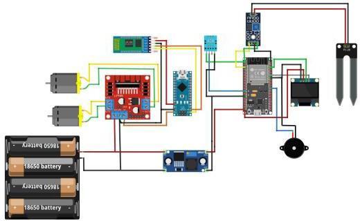Theblockdiagramoftheproposedsystemisshowninthe figure1.1whichshowshoweachcomponentinthesystem is connected and how they are related to each other. The hardwarecomponentsareconnectedtoeachotheronthe basis of this diagram. This system makes use of two microcontrollers Arduino Nano and ESP32 microcontroller.ThecontrollingunitmanagedbyArduino nano controls the movements and the sensing unit managed by ESP32 collects all the necessary data which accurately has to be measured before sending it over the cloud for further analysis. An inbuilt Wi-Fi feature in ESP32 helps to send the data sensed through the sensors inrealtimetotheIoTplatformThingspeak whereallthe history of the perceived data is stored. A customized