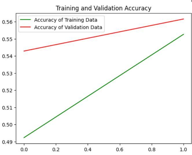 The accuracy and loss of the model's training and validation are shown in the following graph. In the following chart, training set is used to train the model, while the validation set is used to assess the model's performance.