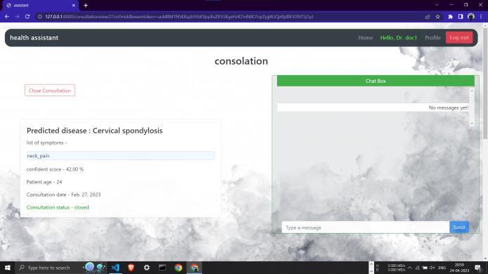 Systems that engage with patients, respond to their questionsaboutmedicine,andofferthemmedicaladviceare knownasvoicerecognition-basedmedicalassistants.These technologies are intended to be more effective than more conventionalformsofcommunication,suchphonecallsor emails, and they can give patients advice that is more individualised and precise. Utilising machine learning algorithmstoanalysemedicaldataandfindpatternsthatcan be used to forecast a patient's likelihood of contracting a specificdiseaseisknownasmachinelearning-baseddisease prediction. Large datasets of medical records, genetic information,andotherpertinentdatacanbeusedtotrain these algorithms to increase their accuracy and dependability.