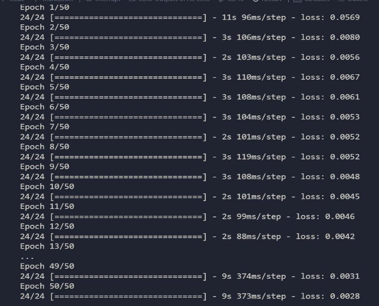 We are predicting the test data using transform function and providing the epoch values around to 50 and then providing the range of -1 to 1 to the reshape function. In
