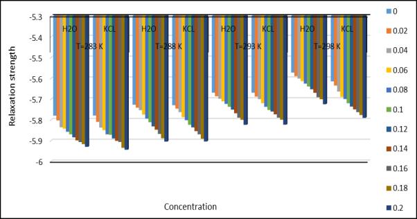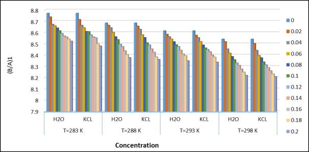 6.6 6.8 7 7.2 7.4 7.6 7.8 H2O KCL H2O KCL H2O KCL H2O KCL T=283K T=288K T=293K T=298K (B/A)2 Concentration 0 0.02 0.04 0.06 0.08 0.1 0.12 0.14 0.16 0.18 0.2 H2O KCL H2O KCL H2O KCL H2O kcl T=283 K T=288 K T=293 K T=298 K kT 1 Concentration 0 0.02 0.04 0.06 0.08 0.1 0.12 0.14 0.16 0.18 0.2 H2O KCL H2O KCL H2O KCL H2O kcl T=283 K T=288 K T=293 K T=298 K kT 2 Concentration 0 0.02 0.04 0.06 0.08 0.1 0.12 0.14 0.16 0.18 0.2 © 2023, IRJET | Impact Factor value: 8.226 | ISO 9001:2008 Certified Journal | Page 1602 International Research Journal of Engineering and Technology (IRJET) e-ISSN:2395-0056 Volume: 10 Issue: 04 | Apr 2023 www.irjet.net p-ISSN:2395-0072