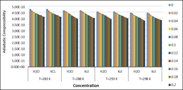Fig.6.Adiabaticcompressibilityatdifferent temperatureandconcentration