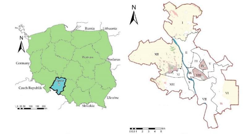 The study focuses on the city of Opole, situated in the south-western region of Poland, which serves as the capital of Opole Province and the core of Opole Agglomeration. As the largest economic, academic and culturalcenterintheregionitholdsgreatsignificanceasa labor market for its residents and the surrounding areas. The city's area was expanded to 149 Sq.km in 2017 by including 12 new villages, ranking it 15th among Polish districts and cities in terms of area. Previously, Opole coveredanareaof97km2.ThecityislocatedintheOdra Rivervalley[9].