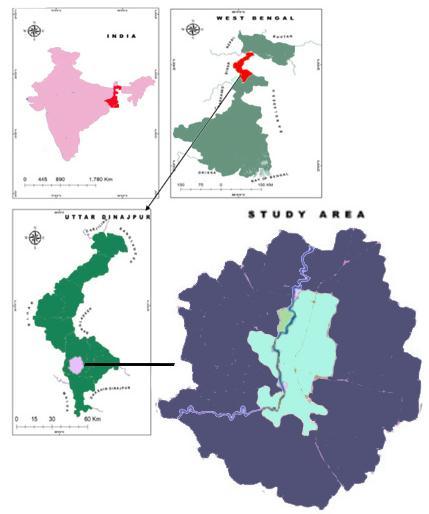 The research was conducted in the southwestern part of Uttar Dinajpur district located in West Bengal, India. The area spans across 110.80 square kilometers and has a population of 199,690 individuals. Raiganj, an urban agglomeration consisting of the Raiganj municipality, Kasba,andNachhratpurKatabaricensustown fallsunder categoryIUAs/townsasperthe2011census[7].