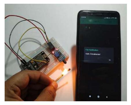 Prior to a fire consuming their houses, people need to be warned, and fire alarm systems are crucial for this. But in today's world, installing fire alarm systems takes a lot of wiring and labour. Users become less inclined to put them in their residences as a result. As a result, we are suggesting a wireless, simple-to-install fire alarm system that is based on the Internet of Things. The suggested system is an ad hoc network that is dispersed throughout the home. This system uses an infrared flame sensor and a microcontroller (ESP8266 node MCU), which continuously senses the environment to look for fire. The microcontrollers establish their own Wi-Fi network. When a sensor detects a fire, the sensor sends a signal to a microcontroller, which activates a local alarm, an SMS to the user, and a call to the user. Sending an SMS to the system allows the user to inquire about the status of his home. A prototype of the suggested system was created, and it successfully implemented the intended functionalities with an average latency of less than 30 seconds.