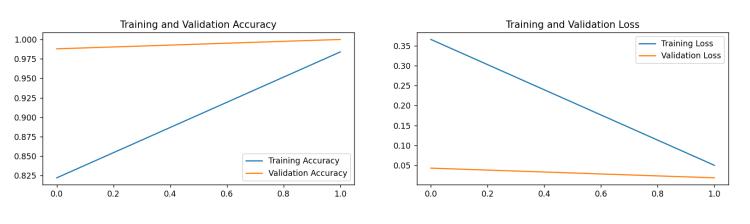 The Figure 3 represents the training and validation accuracyandlossofaGlaucomadetection. Usingaspecific algorithmandconvolutionalneuralnetworkthevalidation accuracyisachievedto99%andtrainingaccuracyisreached to97.5%.Thetrainingandvalidationlossisdetectedandit is0.7%and0.2%.