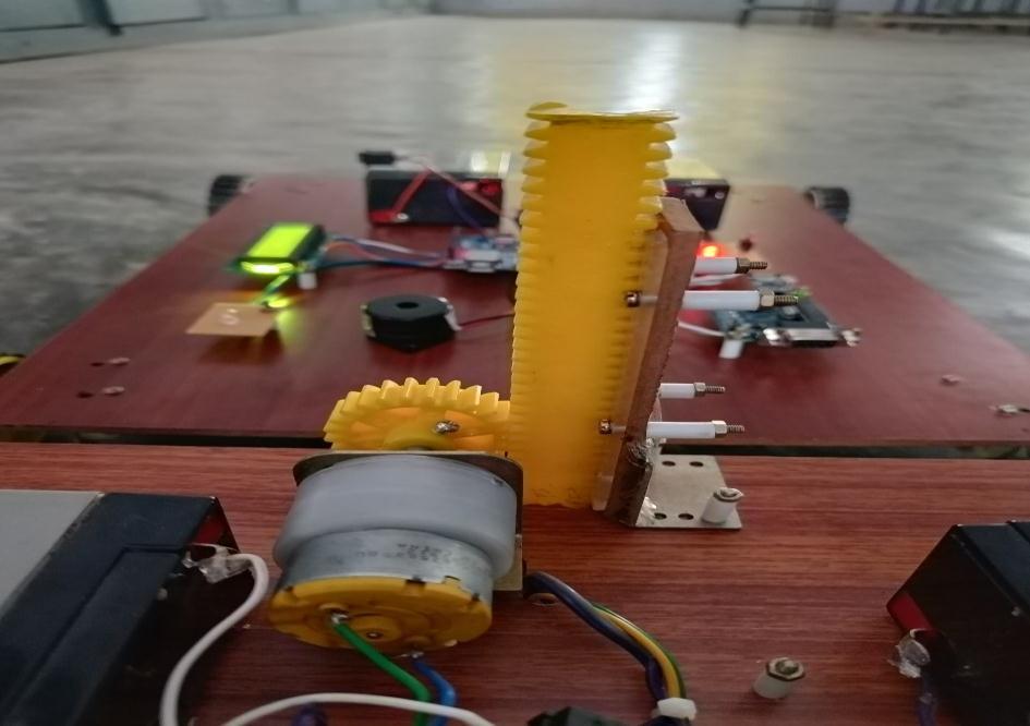 In Figure 8, the compartment separation mechanism is shown. A 12V DC motor is used to separate one compartmentfromanother.Agearwheeliscoupledwiththe DCmotorwhichisusedtoseparatetheotherunit.