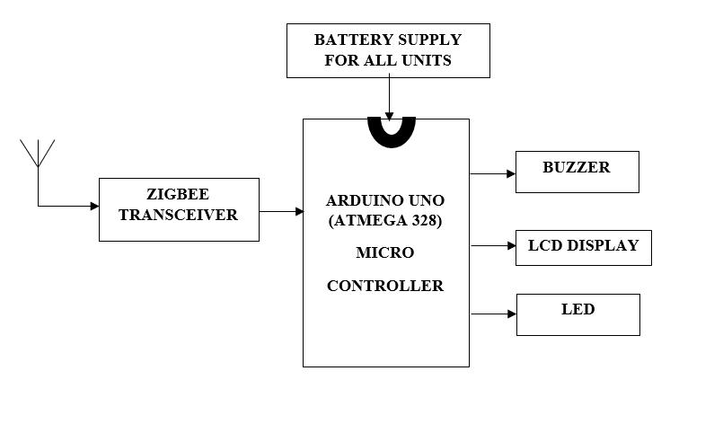 In the receiver node, The ZigBee transceiver receives any abnormal messages and sends it to the microcontrollertoturnONthealertusingabuzzerandLED. Here,separatepowersupplyisusedforalltheunitsinthis system.Thisalertisalsosenttothelocopilotofthetrain.