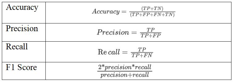 Classification Table: A classification table contains informationabouttheaccuracyachieved,aswellasvalues obtained from precision, recall, and F1-score. The various termsassociatedwithaclassificationtablecanbecalculated usingthefollowingmethods.