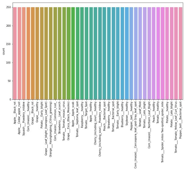 Thedatavisualizationprocesscanalsoberepresentedbya countplot,whichdisplaysall38categoriesofclassesinabar graph.Thisimplementationhelpsinidentifyingthevarious categoriesbydepictingthemvisually.ThebargraphinFigure 4.4showsthe38classesofplantleavesobtainedfromthe dataset.