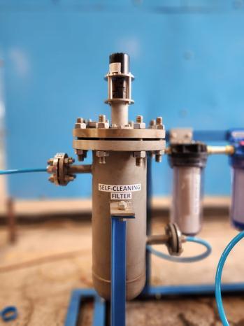 For pre filtration automatic self-cleaning filters are used automaticself-cleaningstrainersaremotorizedstrainerthat isusedtocontinuallyremovecontaminantsanddebrisfroma fluidpipesystem.Theflowofliquidentersthestraineratthe topinletandworksitswaydownwardsthroughthestrainer andthenoutfromthebelowoutlet.Anyunwanteddebrisis caughtinsidethestrainerandpushedtothebottom.When thedifferentialpressurereachesacertainpressurepointthe flush valve at the bottom opens and removes the contaminants.
