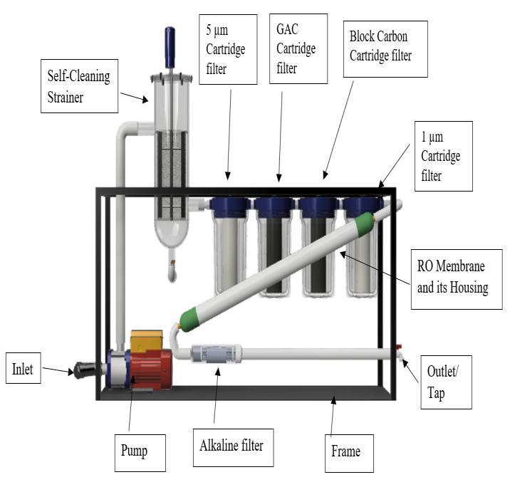 A Micro RO Desalination unit is designed based on the workingprinciplesofactualROdesalinationplant.