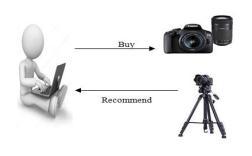 In the depicted scenario, a user's purchase of a camera triggersarecommendationfromthesystemtopurchasea tripod.Therecommendationusestheuser'spreviousactions and preferences as a basis, which are used to suggest productsthatalignwiththeirinterests.Thisisanexampleof howrecommendationsystemsoperate.