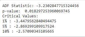 InADFtest,weapproachwithanullhypothesis, assuming that our data is not stationary. We get a few values after performingthetest.Onthebasisofthose values, ifthetest resultislessthancriticalvaluethenwe can reject our null hypothesisandstatethatourdataisstationary.