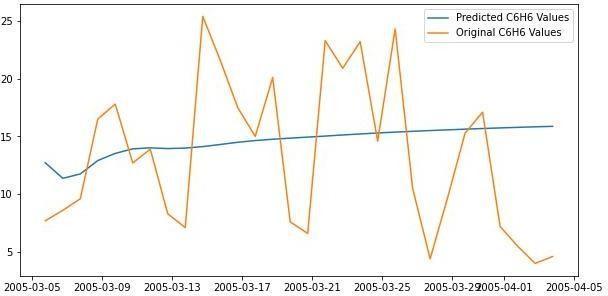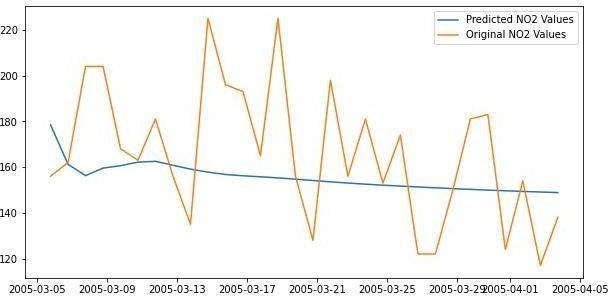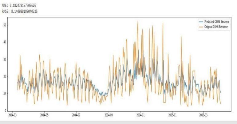 We can see that the model is not performing well and the predictedvaluesareverydifferentwiththeactualvalues.Asthe modeldidnotperformwell,weneedto analyse the accuracy metrics such as Mean Absolute Error (MAE) and Root Mean SquaredError(RMSE).
