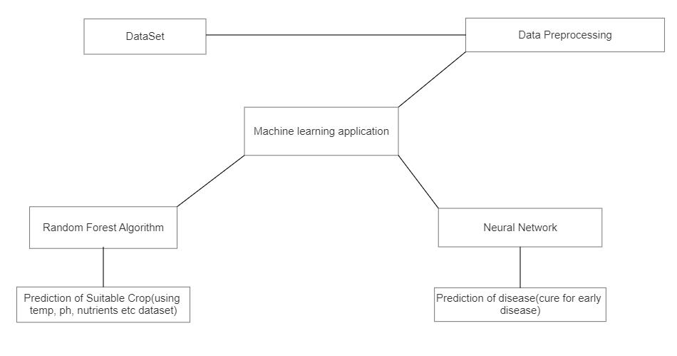 Our project involves a preprocessing technique that includes a feature selection process to choose the most suitable features these selected features are then passed totherandomforestclassifiertoclassifyandpredictifthe crop is suitable for the agricultural field and provide the expected crop production as output the accuracy of the output is evaluated to ensure the reliability of the results during the classification phase the input image is checked for any signs of disease and if any is found the image is further classified into specific diseases researchers have employedseveralclassifiers