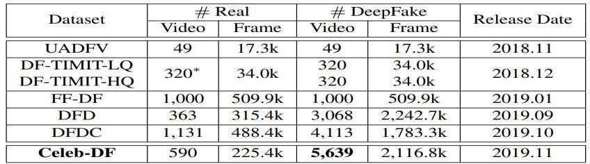 [3] YuezunLi,XinYang,PuSun,HonggangQiandSiwei Lyu Celeb-DF: A Large-scale Challenging Dataset for DeepFake Forensics. arXiv:1909.12962v4 [cs.CR] 16 Mar2020.