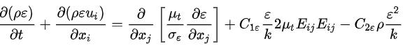 Forturbulentkineticenergyk, Fordissipation ε, Where,