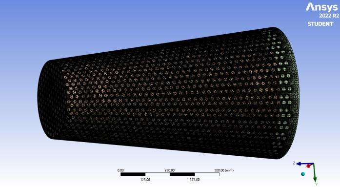 To conduct the computational fluid dynamics (CFD) simulations, the filter assembly first meshed using Ansys Mesh. The housing of the filter was meshed using a quadrilateral mesh, while the filter itself was meshed using the tetrahedral meshing method. This combination of mesh types was chosen to ensure a high level of accuracy and efficiency in the simulations. Overall, the complete setup consisted of 17980 nodes, which were distributed across the various components of the filter assembly. The meshed components were then initialized and tested using Ansys Fluent, a widely used software package for CFD simulations. During the simulation process, the researchers monitored a range of variables, includingpressure,velocity,andturbulence,toanalyzethe behavior of the fluid as it passed through the filter assembly. These data were then used to calculate the