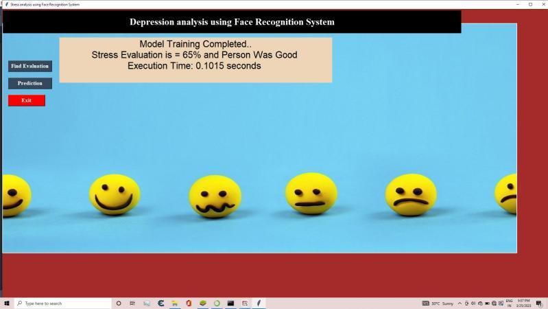 6.StressDetectionSystem:Thestressdetectionsystemwill determine the stress level of the user in percentage and provide the most recorded expression like happy, sad or neutral.