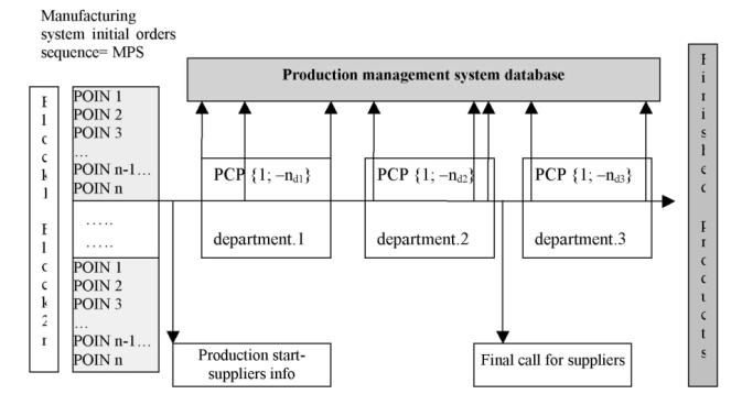 Duetoa numberofunsettlingoccurrences thathappened between the time the observation was made and the MPS was prepared, issues with the production system surface. EventsthatoccurredbetweenthedevelopmentofMPSand itsexecutionhavehistoriesthatareknown.Allrawmaterial andcomponentdeliveriesfollowthejust-in-timeprinciple. Suppliers are given prior notice of production schedules (productionplans)byafewdays.Threetimepointsareused totellfirst-tiersuppliersabouttherequirementsforboththe qualitative and quantitative orders. When the Master Production Schedule is established a few weeks before productionbegins,suppliersreceivetheinitialpreliminary informationonthecomponentsandmaterialsneeded.When theproductionorderssequenceisplannedandthefirstPCP order point (a few days prior to production starts) is reached, the more specific orders are defined. When pretreated goods depart Department 2, the final call for component supplies is made. Final assembly is the phase thatgenerates the most value(Dep. 3). Since there are no buffers,allsuppliesofcomponentsshouldarriveatthefinal assembly department in the proper order. Any major deviationsfromtheanticipatedorderofeventsduringthe production process are caused by issues with timely component suppliers during final assembly. The proper sequencingofmanufacturingordersisessentialforbusiness performancebecauseofthelogicoftheproductionprocess (Fig.2).