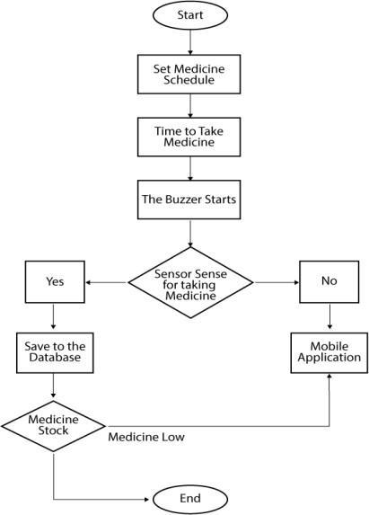 Sensors are implemented to detect the statusofthemedication,whetherithasbeen takenornot.