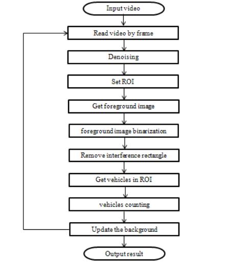 Backgroundsubtractionisusedtofirstidentifypixelsthat mightbeassociatedwithamovingvehicleintheforeground. The current frame in the video is converted from a color (RGB)toagrayscaleimage,andthebackgroundimageofthe streethasnocarsinit[7].Atthattime,thegreyintensityofa backgroundimageissubtractedfromthatofacurrentframe for every pixel (x, y). In another image, also known as a differentimage,theabsolutistresultisstoredinaposition thatissimilartothatofthefirstimage.