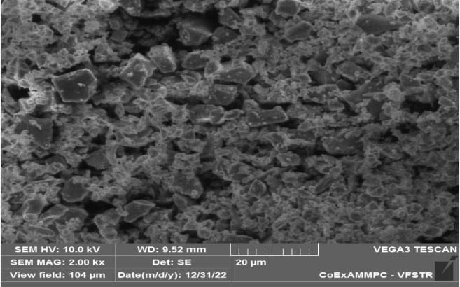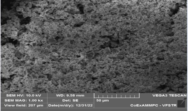 The basic working principle of SEM is Electron beams (primary electrons) striking a surface can either change directionelasticallywithnoenergyloss(elasticscattering) orsomeenergycanbemostinitialelectronsarehaltedasa resultofbeingabsorbed.andsomebackscattered(inelastic scattering). According to the SEM image, the particles of alccofine-1203areextremelyfine,haveaglassysurface,are asymmetricalinshape,andhavesharpedges.