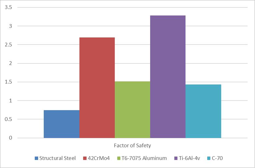 The highest factor of safety has been shown by Ti-6Al-4v (a Titanium alloy) while Structural steel has the lowest factorofsafety.