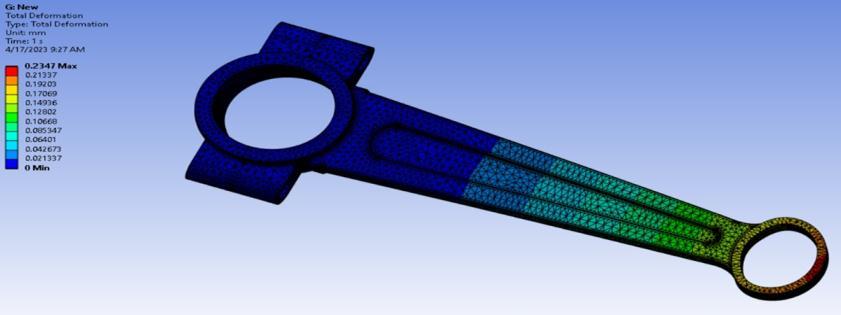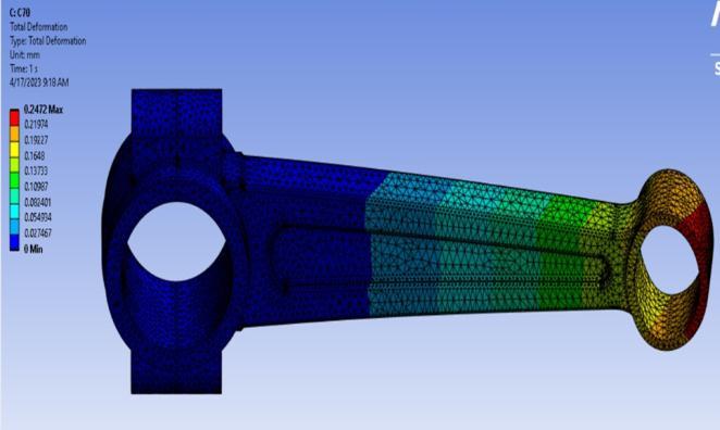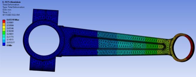 The Static Structural module of ANSYS has been used to perform the simulation on steel, aluminum and titanium alloys which are used nowadays for the production of connecting rods for vehicles. Following are the materials whichwereusedintheresearchforsimulation:structural steel,42CrMo4,T6-7075aluminum,Ti-6Al-4vandC-70.