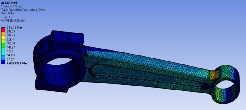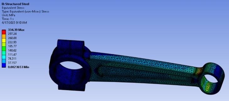 Connecting rods are of utmost importance in the functioning of an internal combustion engine. Their primary role is to convertthe reciprocating motion ofthe piston into rotary motion in the crankshaft, enabling the vehicle's wheels to rotate. Comprising a small end connected to the piston and a big end attached to the crankshaft, the connecting rod experiences various forces during each rotation of the crankshaft. These forces include compression when the piston moves downward and tension when the piston moves upward. Any damage to the connecting rod, such as cracking or buckling, can result in engine immobilization. Such failures lead to substantial financial losses due to material damage and pose significant safety risks, as accidents resulting from these failures can have severe and potentially fatal consequences.