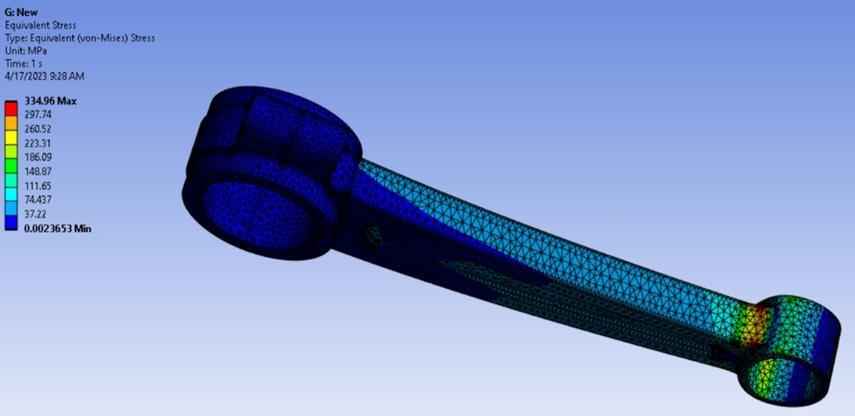 Simulation studies involving SolidWorks and ANSYS were performedtoassessvonMisesstressesandfrequenciesof connectingrodmaterials,aidinginmaterialselection[9].