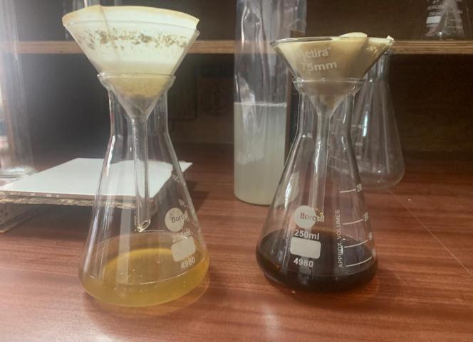 Here in figure shows the column set carried out for the study. Here the waste water sample was placed at the top portion of the column for the easy flow of water and a pipe was connected from the beaker to the column forthepassagewater.