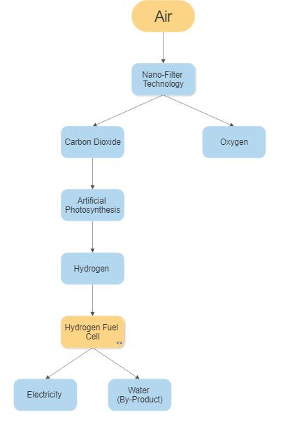The Car is built with the combined work of Artificial photosynthesis and Hydrogen fuel cell The air entered through the front vents of the car is filtered through the carbon nano fibrated filters which help in capturing carbon dioxide. This Carbon dioxide is then pumped into theArtificialphotosynthesischamber.Inthischamber,the carbondioxideandwaterinpresenceofartificialU.Vrays producing Hydrogen as the product of this looped reaction.ThisHydrogenisthenusedinthe Hydrogenfuel cell. Here the oxygen needed in the hydrogen fuel cell is againtrappedfromtheatmosphere,inalessquantity.The Hydrogen and Oxygen gases are then pumped into the FuelCell.
