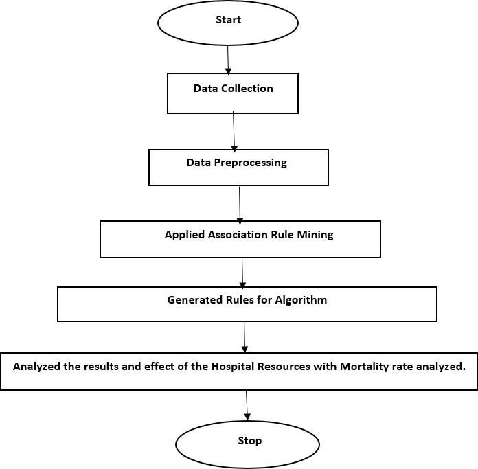 As mortality rates increase consecutively every year all over,healthserviceis themostimportanttask toreducethe mortality rates It miles an undertaking difficult for the Ministry of Public Health to offer clinical information and modern technology for reducing the mortality of the population. The system’s major objective is to analyze hospital data and to find the correlation between hospital resources andmortality rates. The system aims at building a real-timeapplicationusefulforhospitalstoknowthefactorsof increasing death rates. Using data mining strategies, the machine discovers the correlations between offerings and mortality quotes. The proposed system helps full to the scientific departments to reduce the mortality charges. The proposed gadget discovers the hidden correlations among health facility sources such as docs, dentists, pharmacies, nurses, technical nurses, scanning departments, and mortalitycharges.