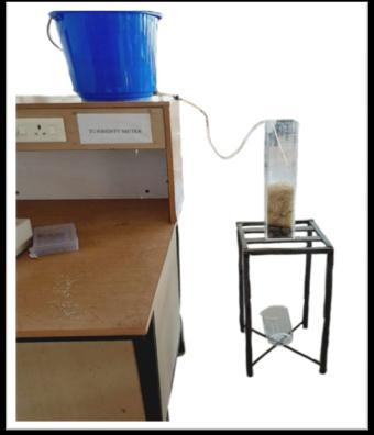 A mesh is placed at bottom from height of 5cm.It wasthenfilledwithfiberforaknowndepthof10,20, 30, 40 and 45cm. It is fabricated for down flow mode and for columnoperation process. Collectionof effluent wasfrom bottom of the setup. Sample was collected through outlet pipein15,30,45,60,75and90minutestounderstandthe variation in parameters for different time period. Also, sincethis isa column study, the flow rate wasalsovaried as10,20,30and40ml/min.