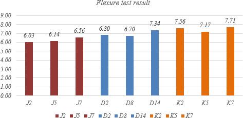 The flexure strength of the concrete does not differ significantly, but a slight increase in flexure strength can be observedwiththepresenceof10%silicafume.