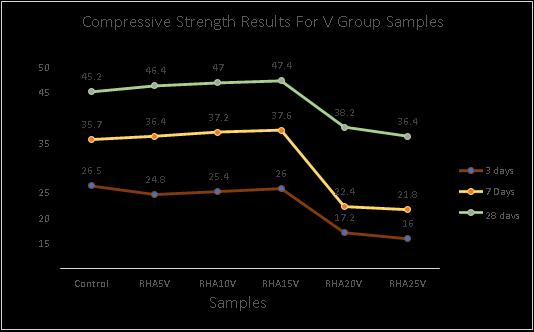 Chart -4:GraphforCompressivestrengthtestresults comparisonforVgroupsamplesandCgroupsamples