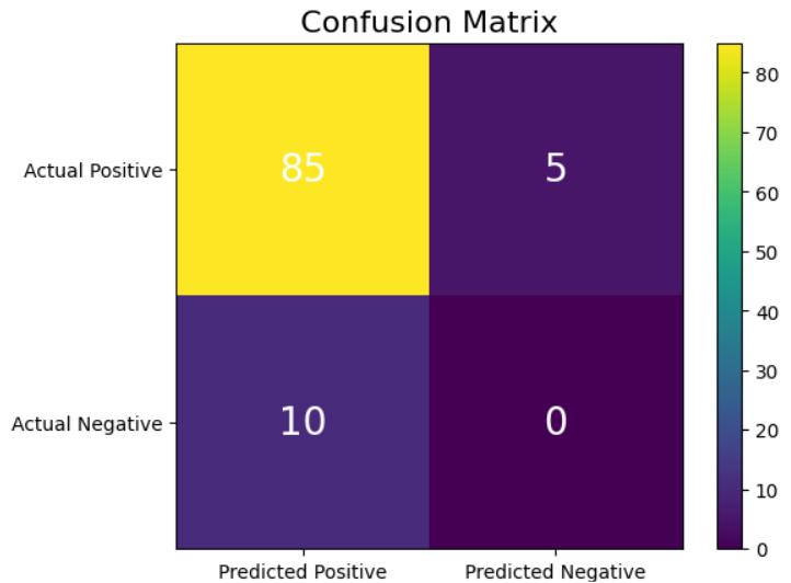 Recall=TP/(TP+FN)=85/(85+10)=0.8974