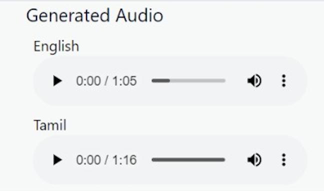 Inthebelow(fig4)itconvertsthe.txtfiletoanaudiooutput. Here,thetextualcontentistransformedtospeechtheuseof a speech synthesizer. This Audio file can be generated in variousotherlanguages.