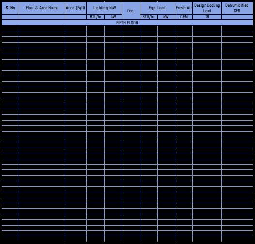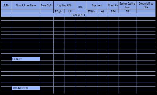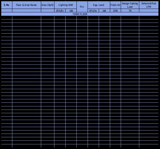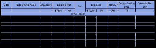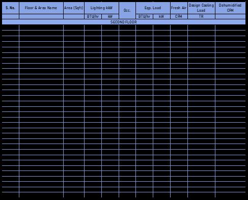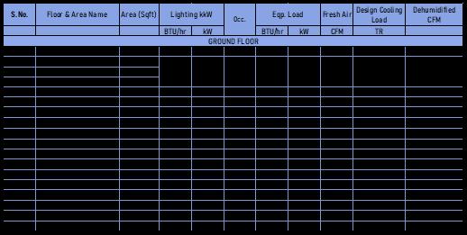 Itisextremelyimportanttoaccountfortheoccupantdensity and ventilation requirements of the occupants in order to accuratelydeterminetheActual HeatLoadofthebuilding. Following are the occupant density and Ventilation requirementsaspertheASHRAE62.